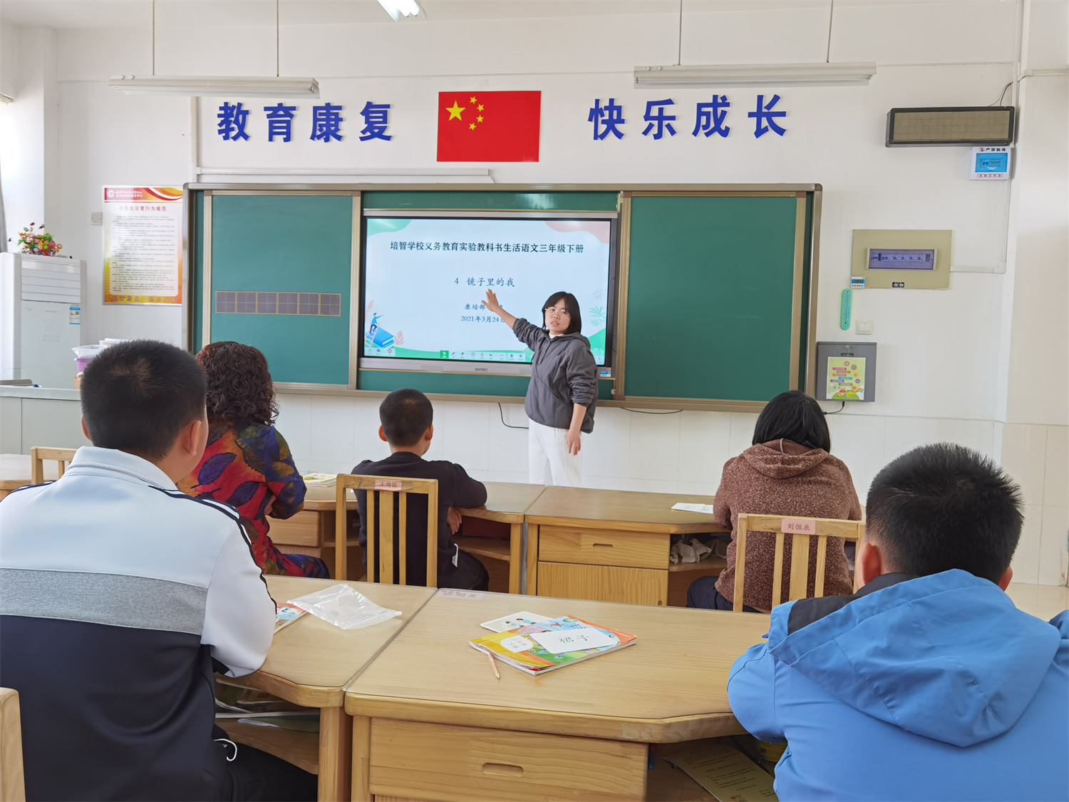 教研上,她主动思考、善于反思,用成果传递力量,从经验型教师向研究型教师转变。近两年,她深耕教研,主动参与省市级课题研究,发表数篇论文;牵头编纂《语言训练》《认知训练》等校本教材,将教学经验转化为可推广资源,用行动诠释新时代特教教师的责任与担当 。