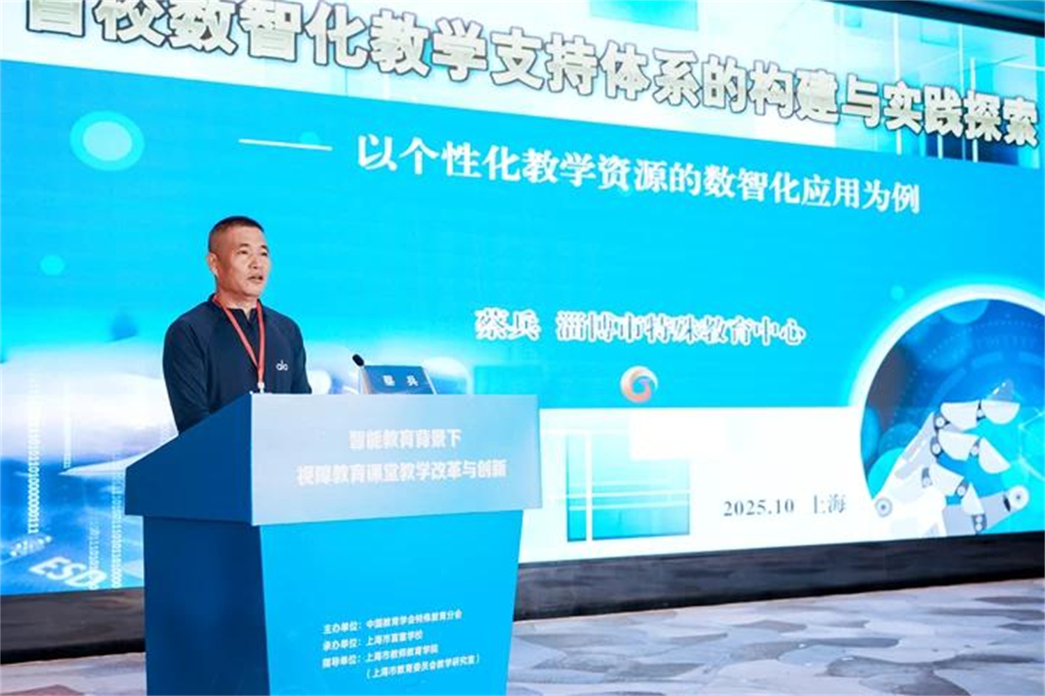 会上,蔡兵老师以“视障教育数智化教学支持体系构建和实践”为题做了专题发言。蔡老师首先分析了当前盲校课堂教学资源数智化应用存在的主要问题,然后从“重构数智化教学资源范式,实现多模态与沉浸式融合”“数据刻画精准学情画像,实现学情分析从经验到科学的转化”“以AI赋能,使教学设计从传统到精准转变”以及“智能体创设多模态学习情境,助推盲生实现从抽象认知到具身体验的跨越”等四个方面详细介绍了我校运用AI技术深入推进盲校课程资源建设的有效探索和取得的显著成果。
