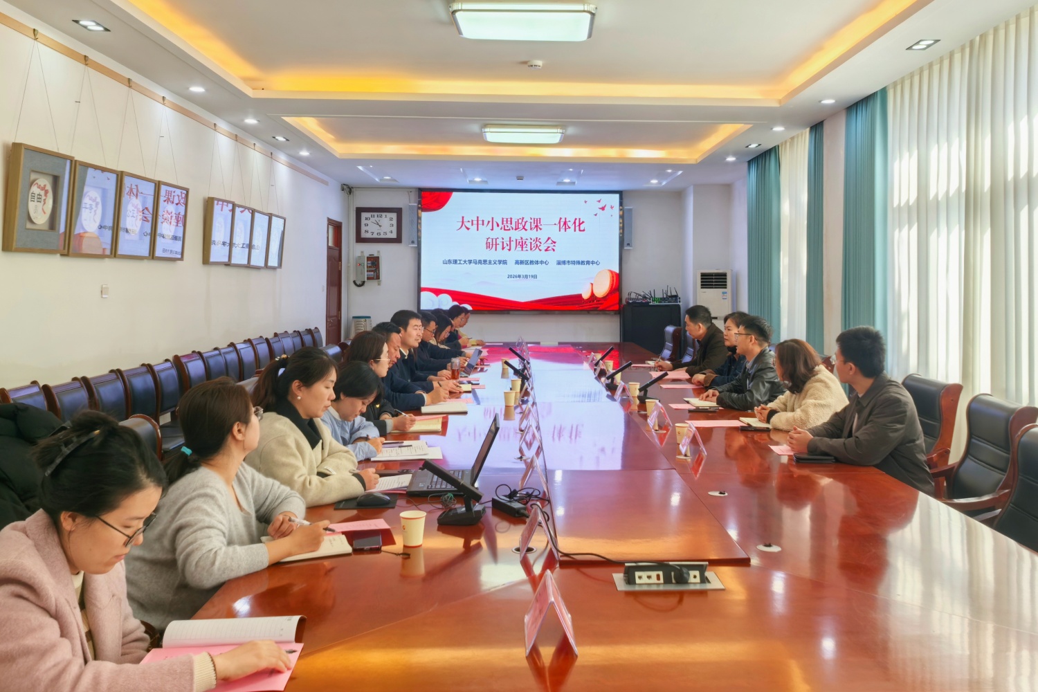 3月19日,山东理工大学马克思主义学院、高新区教体中心、市特教中心联合开展大中小学思政课一体化建设研讨座谈会。山东理工大学马克思主义学院党委副书记、淄博市大中小学思政课一体化工作室主持人李萍,高新区五级职员李文祥,高新区教体中心相关科室负责人、市大中小学思政课一体化工作室成员、市特教中心部分领导班子、管理干部及思政课骨干教师近20余人参加会议。会议由李文祥主持。