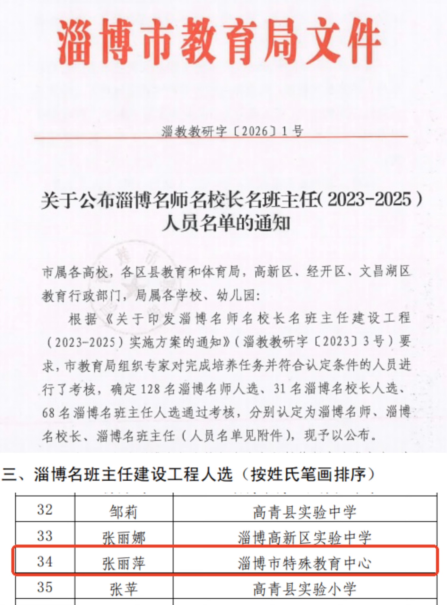 近日,淄博市教育局发布《关于公布淄博市名师名校长名班主任(2023-2025)人员名单的通知》,淄博市特殊教育中心张丽萍老师凭借深耕特教一线的坚守、卓越的班级管理能力与深厚的教育情怀,获评淄博市名班主任。