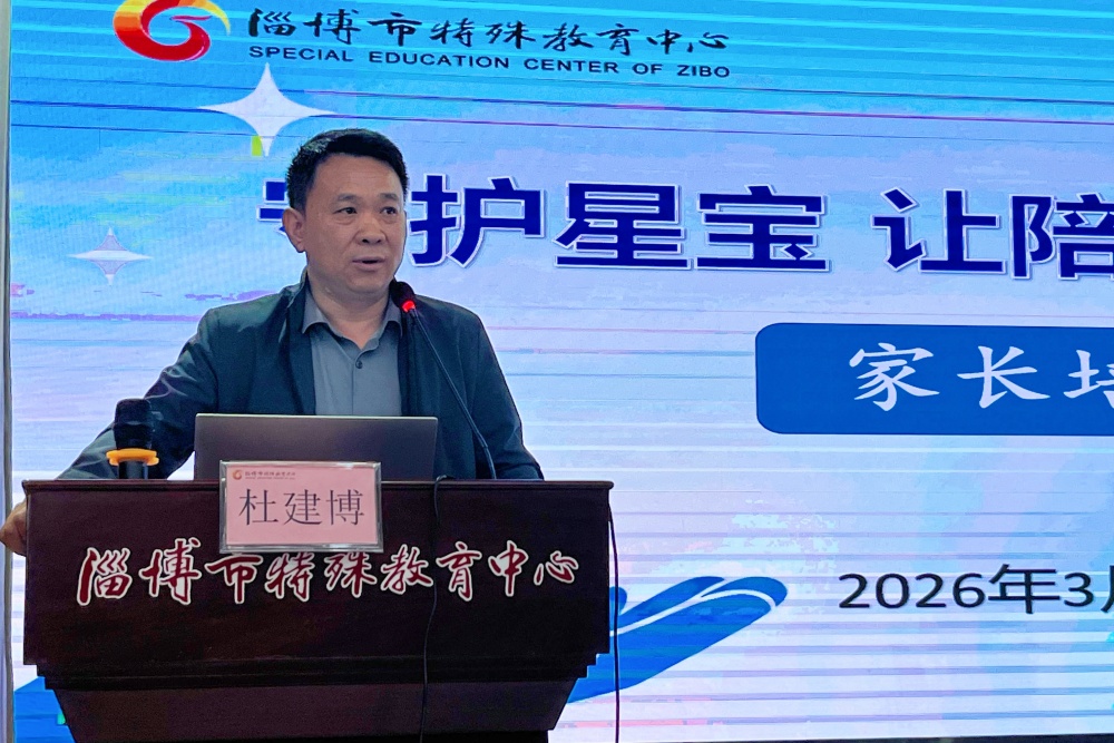 3月31日,在第19个世界孤独症日来临之际,淄博市特殊教育中心紧扣“提质全生涯服务供给,聚焦孤独症家庭支持与成年服务”宣传主题,在博爱礼堂举办了“守护星宝 让陪伴更有力量”家长培训活动。本次活动旨在聚焦孤独症家庭的核心需求,为家长们提供专业、实用的支持与指导。学校党委委员、副校长杜建博,相关教师及学生家长参加活动。