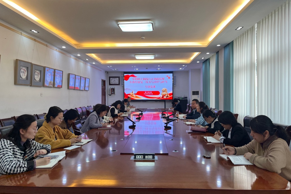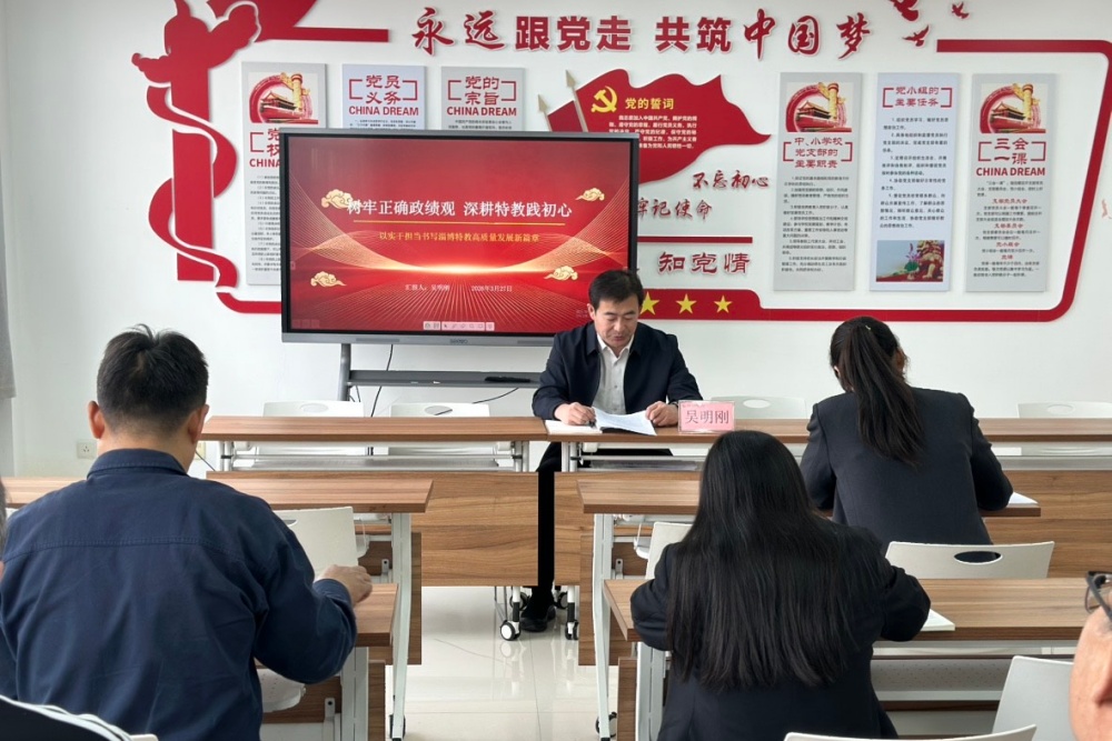 3月26日,以“树立和践行正确政绩观 促进特教事业发展行稳致远”为题开展专题党课。立足特殊教育实际,深入探讨如何在特教岗位上树立正确政绩观,引导党员以“功成不必在我”的境界和“功成必定有我”的担当,推动学校事业持续健康发展。
