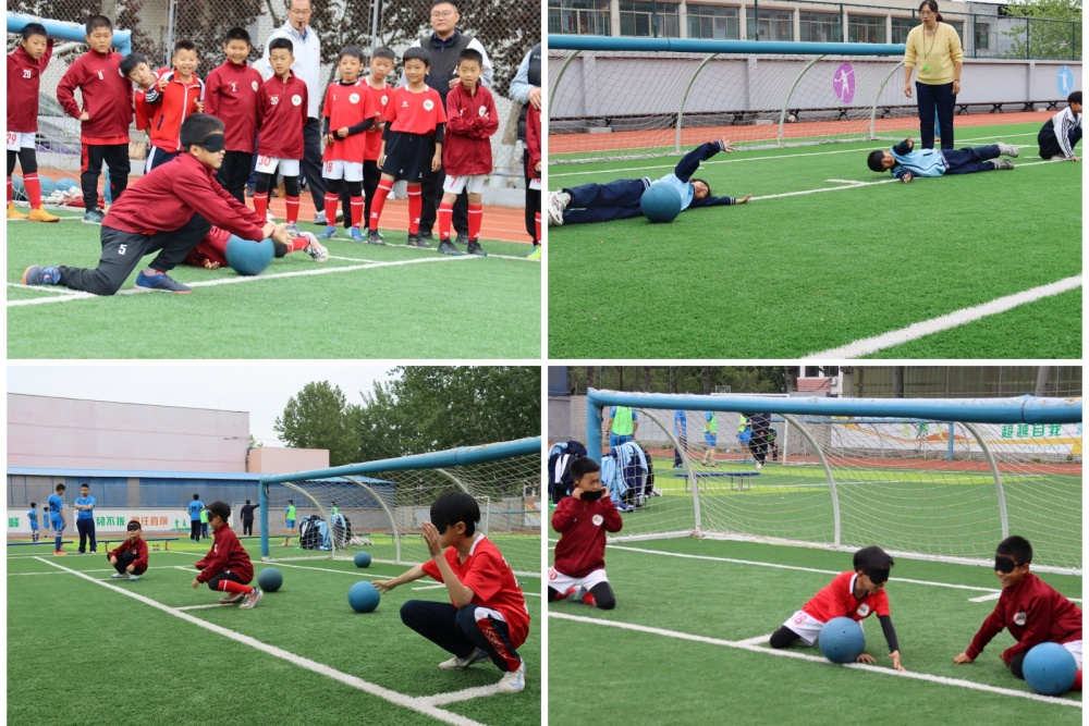 在随后的盲人门球互动交流中,一小师生不仅现场观看了精彩的盲人门球练习赛,还戴上眼罩、拿起门球,与视障学生一起在球场上体验这项体育运动的趣味和快乐,同时也感受到了他们阳光自信和坚强。