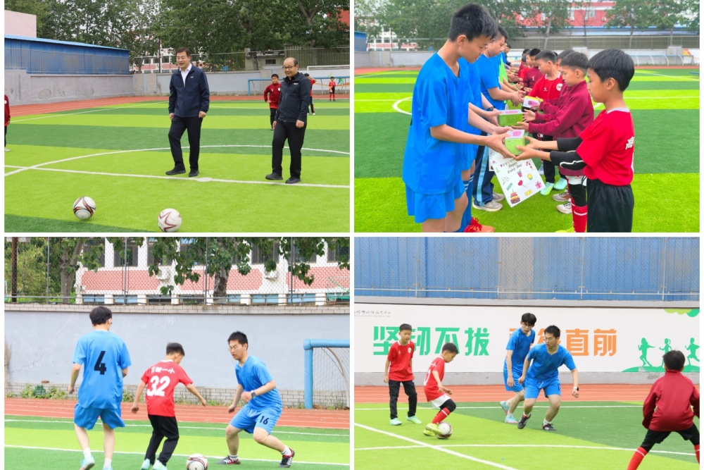 一小足球队与听障学生足球队的孩子们互赠伴手礼,并进行了五人制足球友谊赛,吴明刚、曹永为友谊赛开球。特需学生与普校学生在足球运动中切磋球技、建立友谊、收获健康。